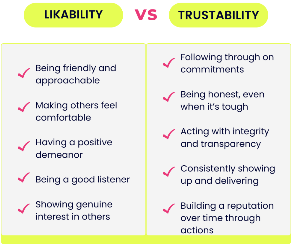 Remember, being likable can open doors, but being trustworthy keeps those doors open. 🚪